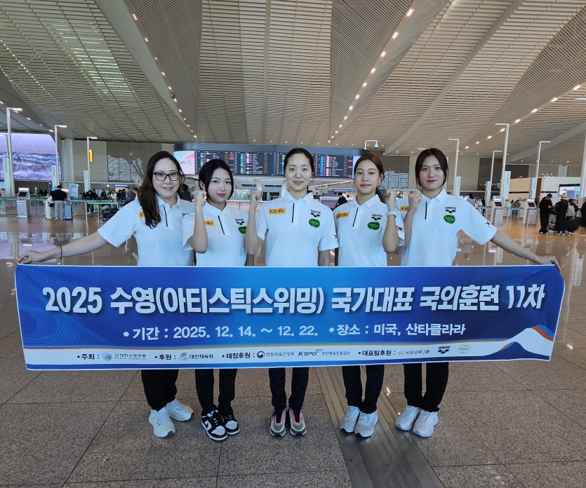 대한수영연맹(회장 정창훈)은 14일 저녁 아티스틱스위밍 김효미 지도자와 2026/26시즌 아티스틱스위밍 국가대표 허윤서(성균관대), 이채은(경희대), 이규빈(딥블루밍), 김지윤(운중고)까지 총 5명으로 꾸려진 선수단을 일주일간 국외훈련을 위해 미국, 산타 클라라로 파견했다고 전했다.