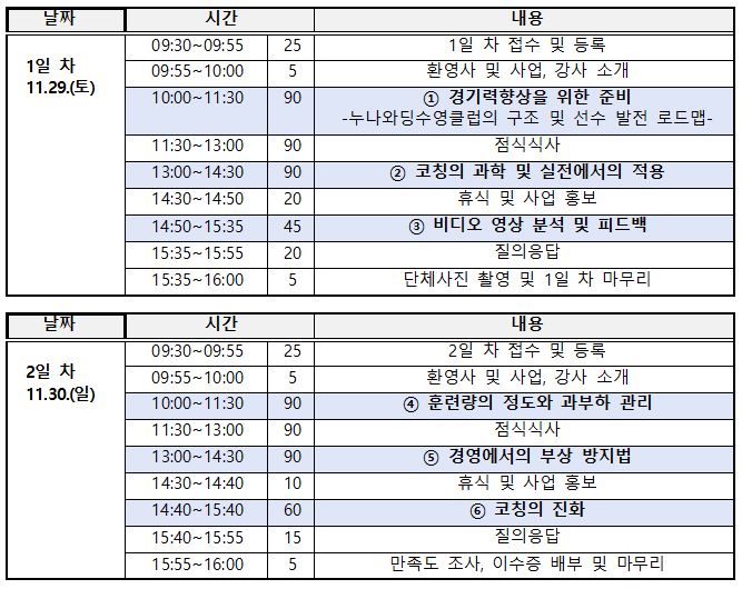 마. 초청 강사로부터 영법에 대한 피드백을 받고 싶은 참석자는 11월 26일(수) 13시까지 온라인 양식 작성 및 제출