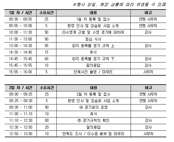 사. 세부일정(안): 단, 강사의 요청 등에 따라 변경될 수 있음